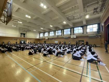 校長先生より、昨日の「津波の日」にちなみ、防災についてのお話がありました。