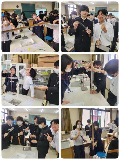 滑車の実験をしています。理論値を掴み取れ!を合言葉にがんばっていますが、やはり少し誤差がでるようです。