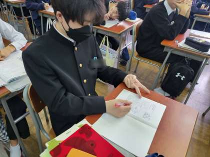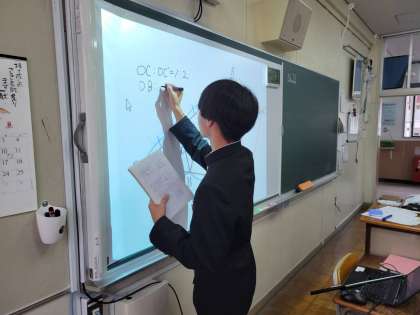 どの辺とどの辺が平行かを考えています。ばっと見で平行に見えても、計算してみると違うこともあります。やはり、計算するとこは大切ですね。