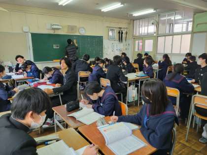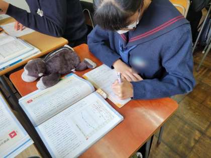 メディアの長所と短所について考えています。班で意見を出しあいながら、ノートにまとめていっています。