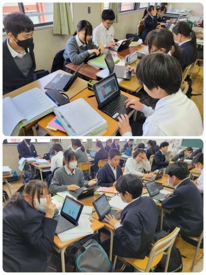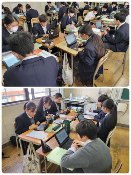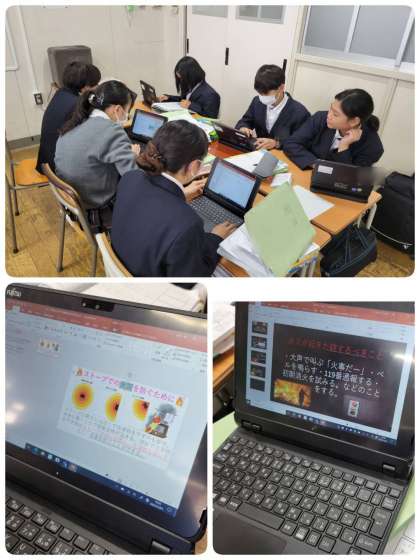 防災調べ学習、地域の防災マップをつくろうに取り組んでいます。前回までの授業で調べたことを、パワーポイントにまとめて発表の準備をしています。