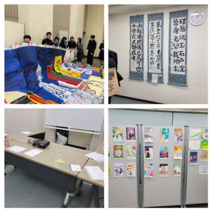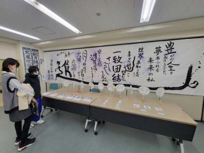 展示発表では、夕陽丘中学校の書道部と科学部と美術部の作品が飾られています。朝から展示の準備、おつかれさまでした。お時間ある方はぜひお越しください。