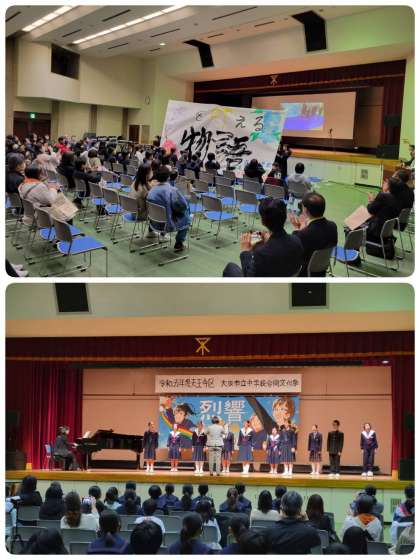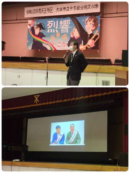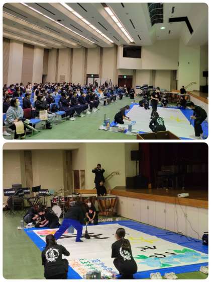 その後の舞台発表では、本校からは、書道部が高津中学校と合同でパフォーマンスを行い、合唱部が天王寺中学校と合同で合唱しました。どちらも素晴らしい発表でした!