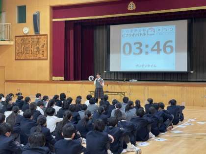 ビブリオバトルのチャンプ本決定戦がありました。クラス代表者はそれぞれ5分間の個性のある発表をしてくれました。代表者のみなさん、国語係さん、いろいろと準備おつかれさまでした。ふ