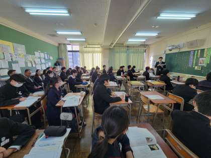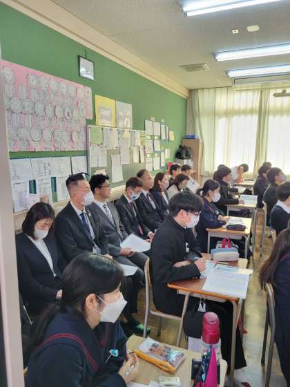 大阪市教育委員会より、教育長はじめ、教育委員の方々がお越しくださり、授業の視察と意見交換を行いました。