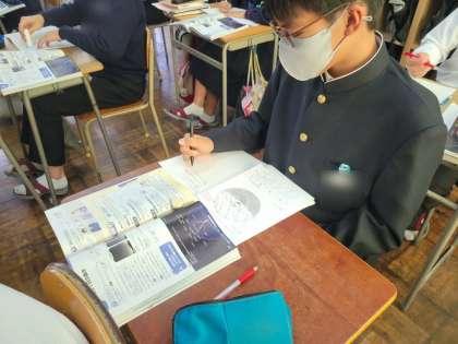 星の1日の動きについて学習しています。みなさん天球の模式図を描くのに苦労しておられます。