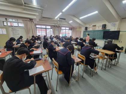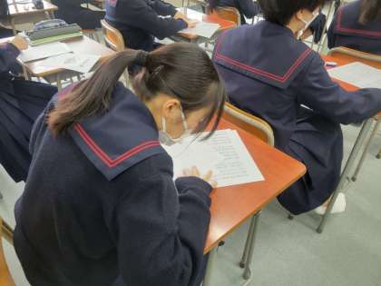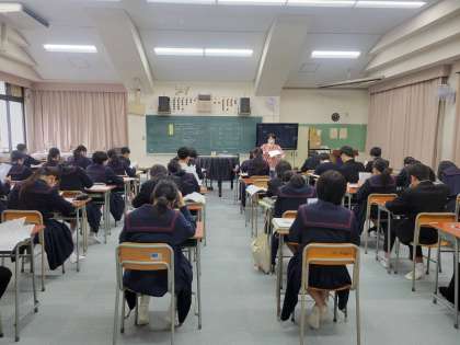生徒のみんなから先生にお祝いの歌がプレゼントされました。授業のおわりに、3年生を送る会で歌う曲の楽譜づくりをしました。3学期に入るとこの曲の練習が始まります。