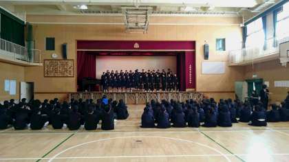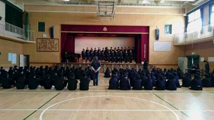緊張した面持ちで入場・退場を確認する生徒たち。