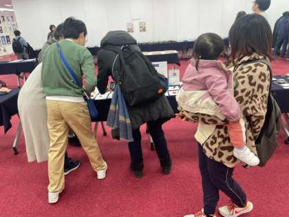 夕陽丘中学校の先生や生徒がたくさん見に来てくれています。開催期間は明日の17:00までとなっておりますので、お出かけの際はあべのハルカス24階の大阪芸術大学スカイキャンパスまでお越しください。