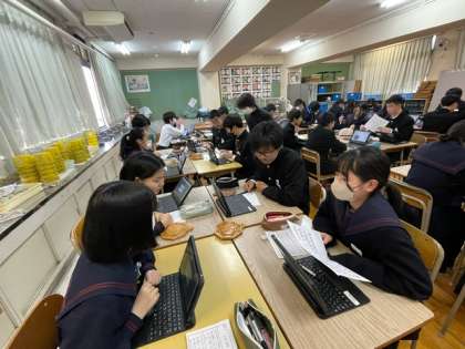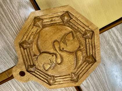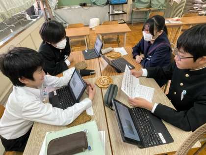 長かった鍋敷きの制作が終わり、相互鑑賞をしました。班で真ん中の浮き彫りのデザインの理由や工夫した点を発表し、全体鑑賞もしました。