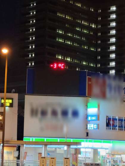 おはようございます。とても寒い朝になりました。町の温度計は、−3℃を示していました。朝練している人も寒そうです。