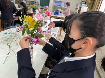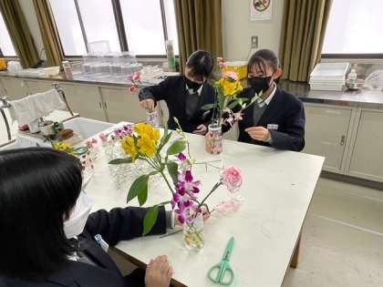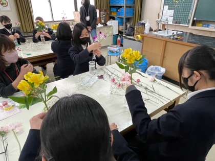 「お花」の講座の様子です。彩りを考えながらお花とお花を組み合わせていきました。