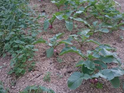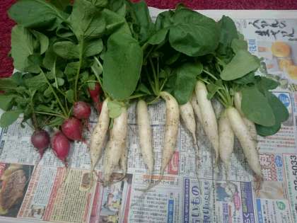 園芸部が菜園ではつか大根などを栽培しています。立派に育ったものを収穫しました。収穫の秋、美食の秋、美味しくいただきま−す。