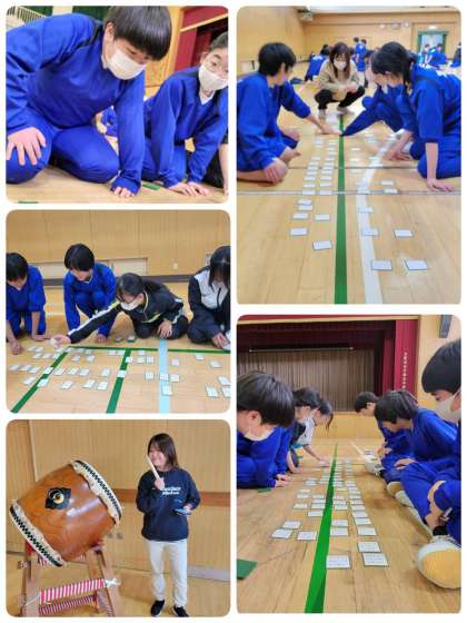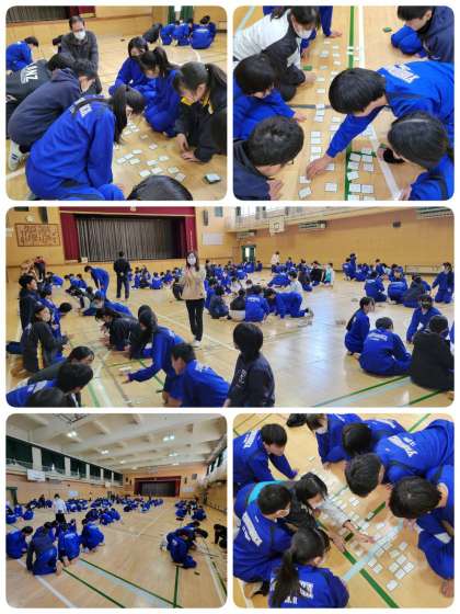 百人一首大会が行われました。この日に向けて、たくさん練習してきたとあって、みなさんかなり真剣です。とても盛り上がった大会になりました。結果は来週の学年集会で発表されます。どのクラスが優勝するのかドキドキですね。