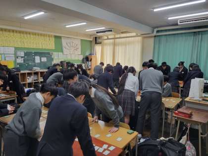 今週金曜日の百人一首大会に向けて、百人一首の練習をしました。少しずつ覚えてる句が増えてきているそうです。