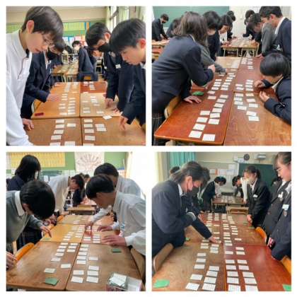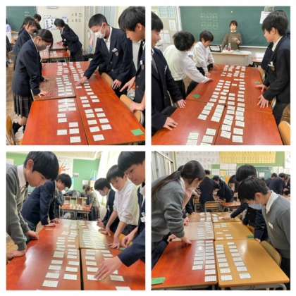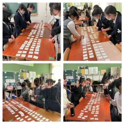 5時間目に百人一首のクラスの交流戦がありました。金曜日の百人一首大会に向けて、とても良い刺激となりました。あと2日、1枚でも多く覚えて百人一首大会に臨みましょう。