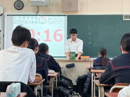 各クラスで「ビブリオバトル」を行いました。自分のおすすめしたい本を工夫しながら紹介していました。