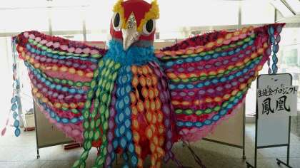 玄関ホールには素晴らしいオブジェが。生徒会プロジェクトとして作成した『鳳凰』です。テーマは「自分が、一番幸せと感じる時」。