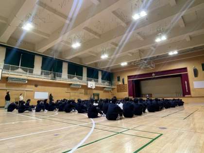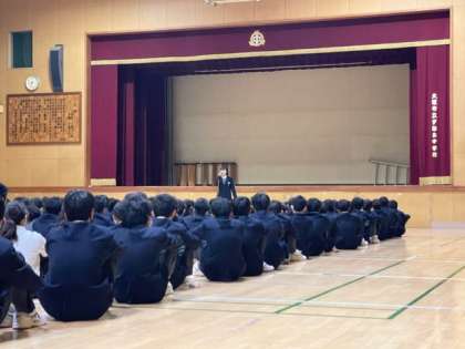 先生から健康面のお話がありました。健康に過ごすには栄養、休養、運動が大切であると再確認しました。今日からテスト計画を立てます。勉強に使える時間を確保できるようにしっかりテストまで計画を立てましょう。