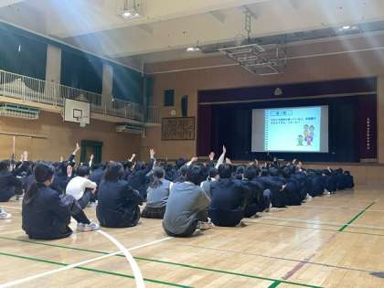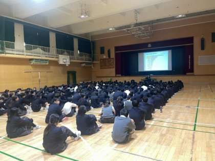 進路担当の先生からお話がありました。クイズ形式で楽しく学ぶことができました。将来、自分がどの道に進んでいくのかを考えるきっかけとなりました。