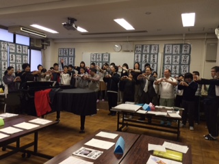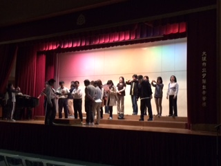 3年生最優秀賞クラス曲の発表の後、教職員合唱を行いました。実は放課後遅くまで猛特訓を行っていたのです。いかがでしたか?