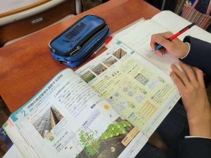 作物の育成環境を調節する技術について学習しています。2年生では夏に向けて、オクラの栽培をする予定です。