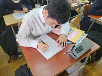 英語の授業では毎時間、授業の始めに単語テストと文法のテストをしています。スラスラできている人もたくさんいます。