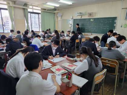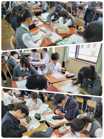 文字と式を学習しています。問題演習の時は、班で教えあったりして、理解を深めています。