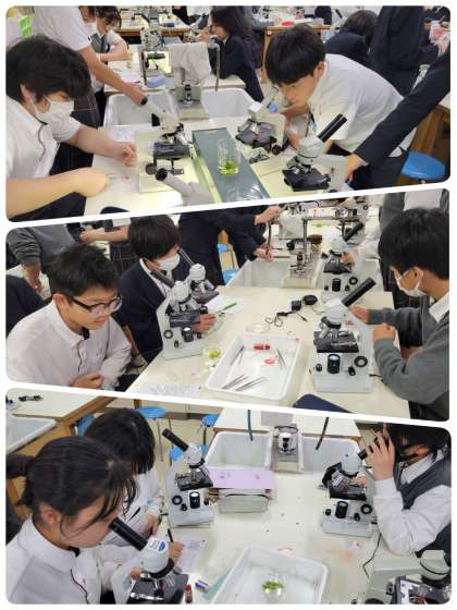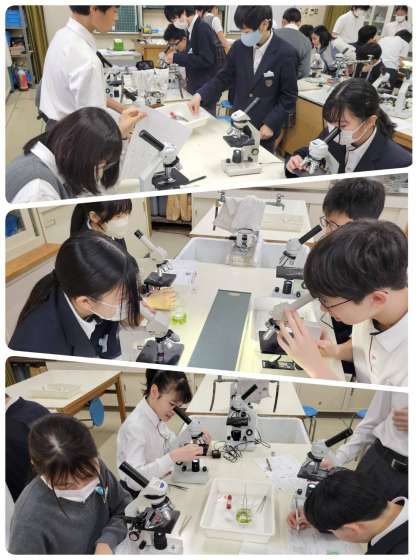 植物の細胞の観察をしています。