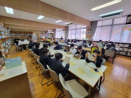 今日は図書館びらきをしました。図書室の中や使い方のルールを説明してもらいました。