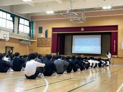 目標達成の一つの方法の話がありました。心を大きく伸ばして人間性の土台を作っていきましょう。