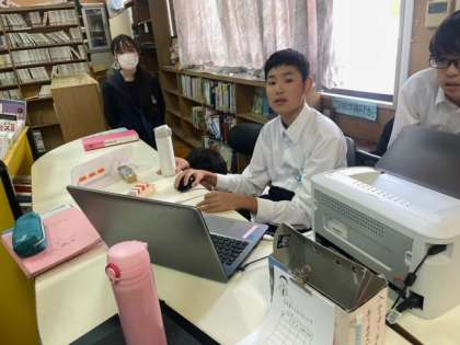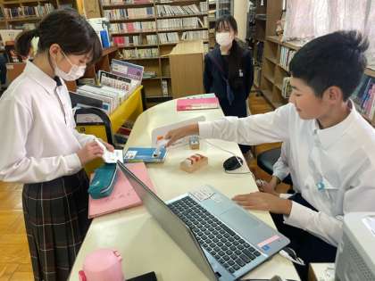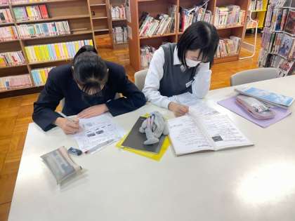 図書委員が図書室を開けて本の貸し出しと返却の仕事をしてくれています。今日はテスト前なので勉強をしてる人が多かったです。