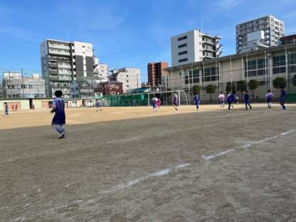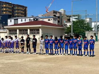 サッカー部は地区大会1回戦で大桐中学校と対戦しました。立ち上がりはリズムがなかなかつかめませんでしたが、前半終了間際に先制点をとりました。後半も追加点をとり、2-0で勝ちました。