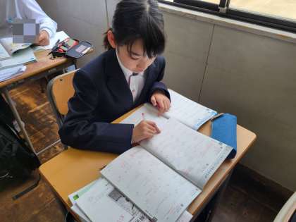 テスト前の自習の様子です。初めてのテストに向けて緊張もあるようですが、みなさん集中して学習しています。