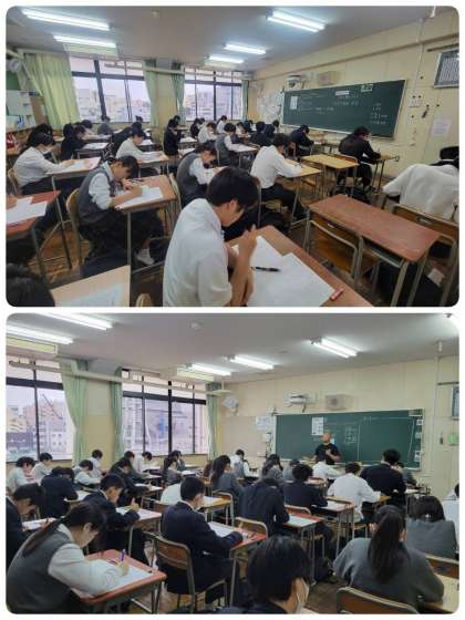2年生も英語、社会、数学のテストを受けました。こちらもしっかりと集中して取り組んでいます。