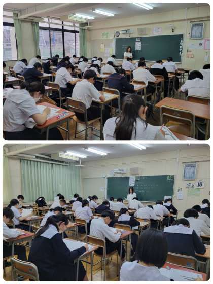 3年生も英語、社会、数学のテストを受けました。明日のテストもがんばりましょう。