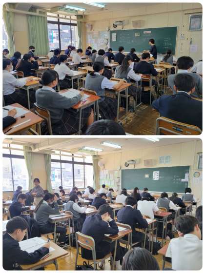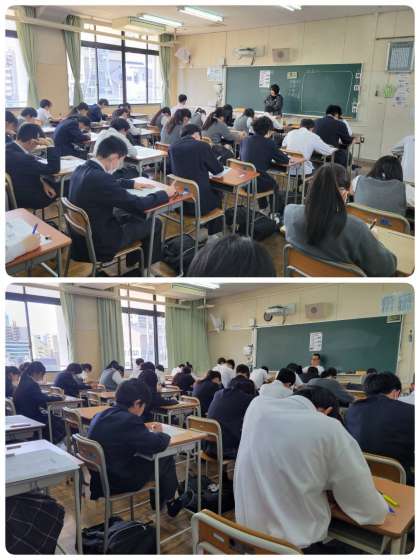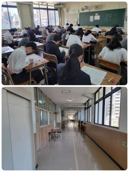 2年生は、理科と国語と技術・家庭のテストを受けました。みなさんとても集中しています。