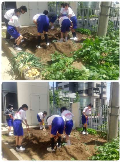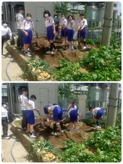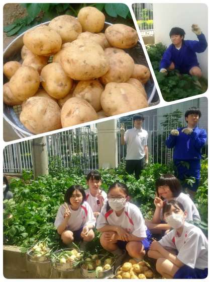 園芸部では、テスト後玉ねぎと、じゃがいもの一部を収穫しました。残りは来週収穫する予定です。