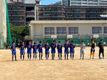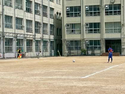本日、地区大会3回戦で今津中学校と対戦しました。開始早々に先制しましたが、そこからは我慢の時間が続くゲームになりました。お互いに点を取り合い、2-2のままPKになりました。