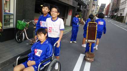 校外で車いす体験を行うに当たって、多くの保護者の方に安全確保のボランティアにご協力いただきました。ありがとうございました。