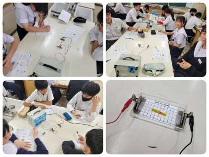 自分の班で実験したあと、他の班の結果も見に行き、考察を深めています。