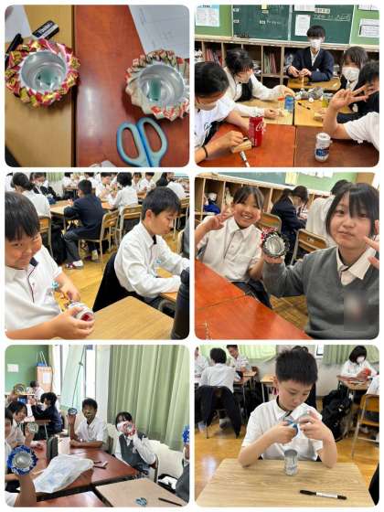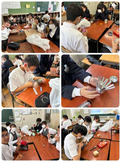 折り方に苦戦しながらも班で協力しあって作ることができました。