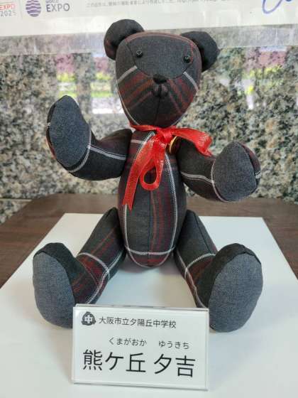 新しくなった制服と同じ生地で作られた熊のぬいぐるみです。