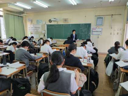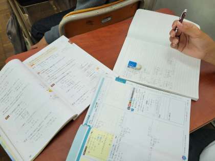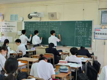 連立方程式の加減法を学習しています。こちらも教育実習生の授業がスタートしました。みなさんしっかりと集中して取り組んでいます。