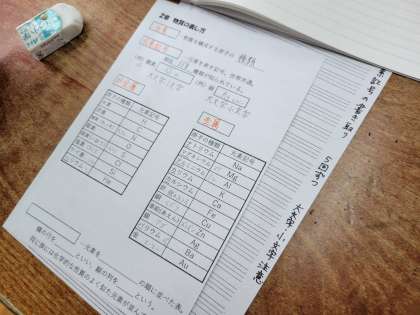 元素記号を学習しています。たくさんあるので覚えるのか大変です。そこで先生が、オリジナルの面白い覚え方をたくさん教えてくれました。
