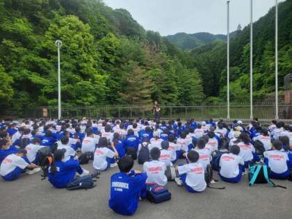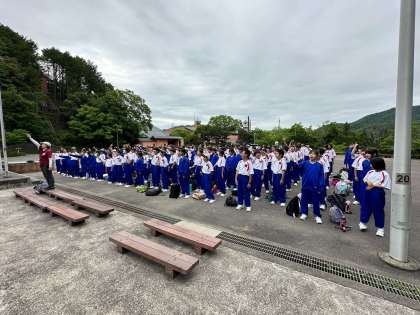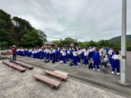 ハイキングが少し早く終わったので、みんなで少しだけ校歌の練習をしました。山あいに歌声が響き渡り、とても爽快でした。