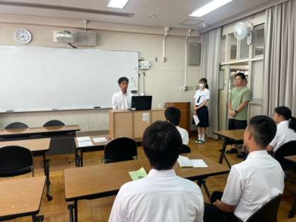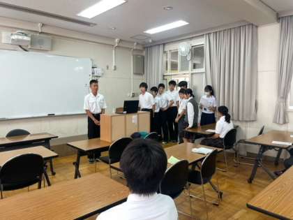 今週はテストがあります。体調を整えてのぞまないといいパフォーマンスはできません。温度も湿度も上がってくる時期です。体調管理をしっかりしましょう。校長先生からのお話の後に、陸上部の表彰がありました。最後に、各委員会からの連絡がありました。