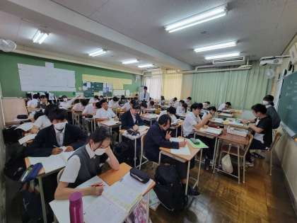 テスト前、復習しながらそれぞれの課題に取り組んでいます。