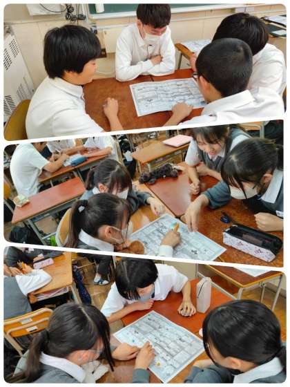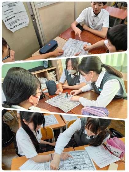 ライフキャリアすごろくをしました。どんな学校に進学するのか、どんな仕事に就くのか、結婚するのかなど、すごろくを通して自分の将来を少し想像してみました。