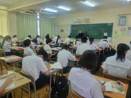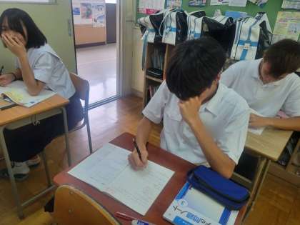 テストの後の復習をおこなっています。明日から修学旅行だなんて全く感じさせないくらい、みなさん集中して取り組んでいます。
